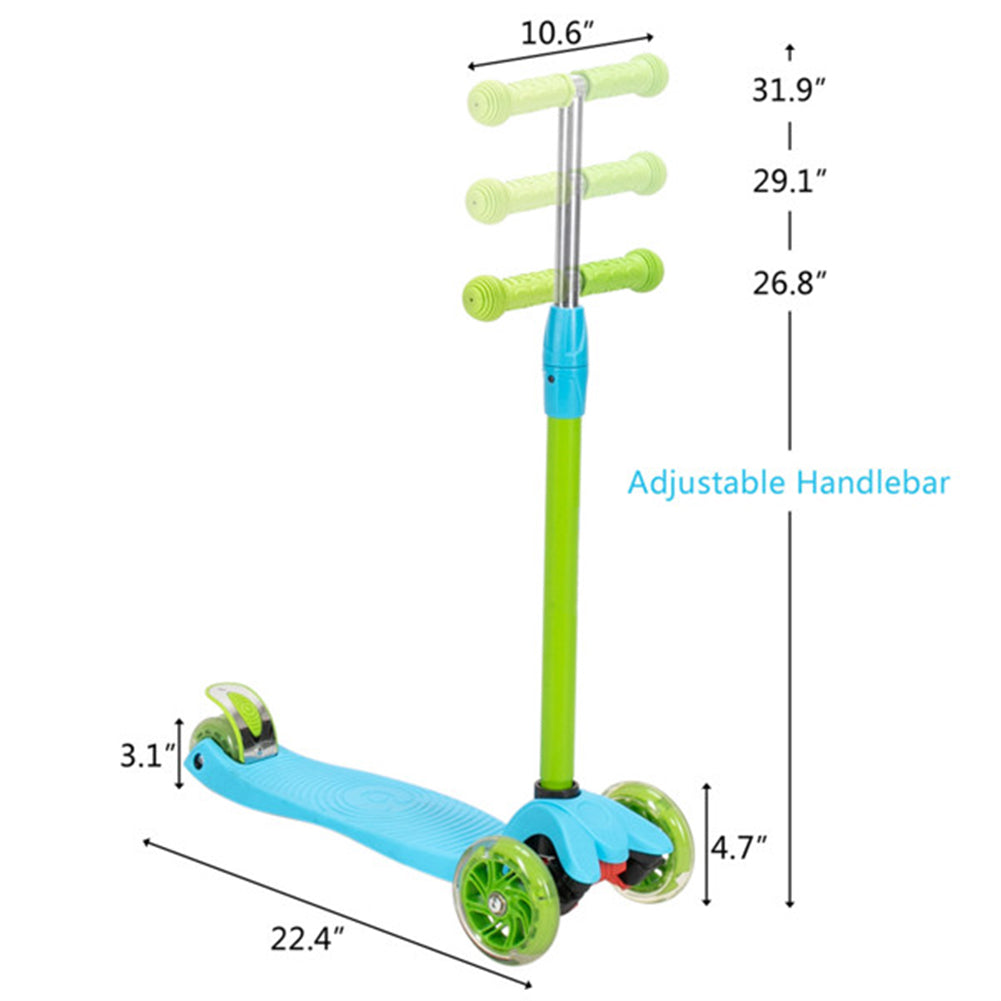 YIWA Toddlers Scooter Non-foldable 3-speed Adjustment Blue-Green