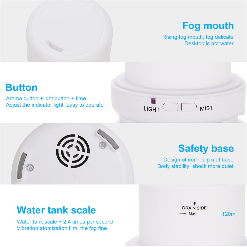 ZOKOP 120ml Usb Aroma Diffuser with Colorful Lights White