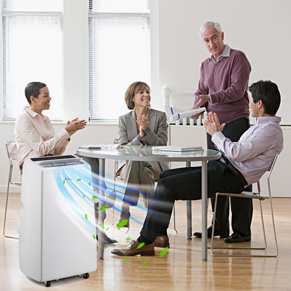 2.4-in-1 Functionality - Combines 4 energy efficient functions for all of your cooling, 10000 Btu heating & ventilation needs with cool, fan, heat, & dehumidifying modes all in one machine. Bucket-less, self-evaporating operation makes your living space cool, clean and dry. At the same time, it has a memory function. When you restart the machine, you can directly enter the previously selected mode, which can reduce the trouble you need to set