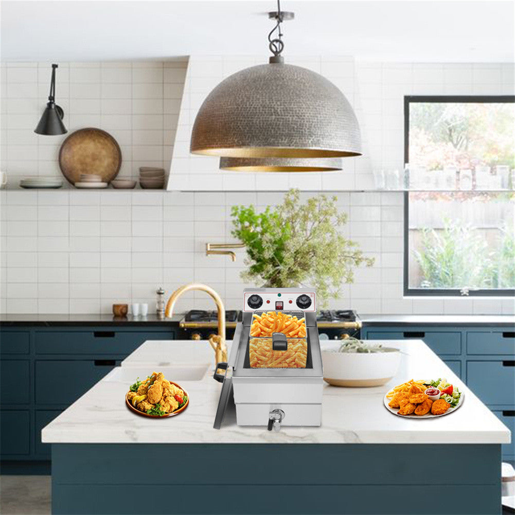ZOKOP 1700W Electric Fryer Stainless Steel Big Capacity Faucet Single Tank Deep Fryer
