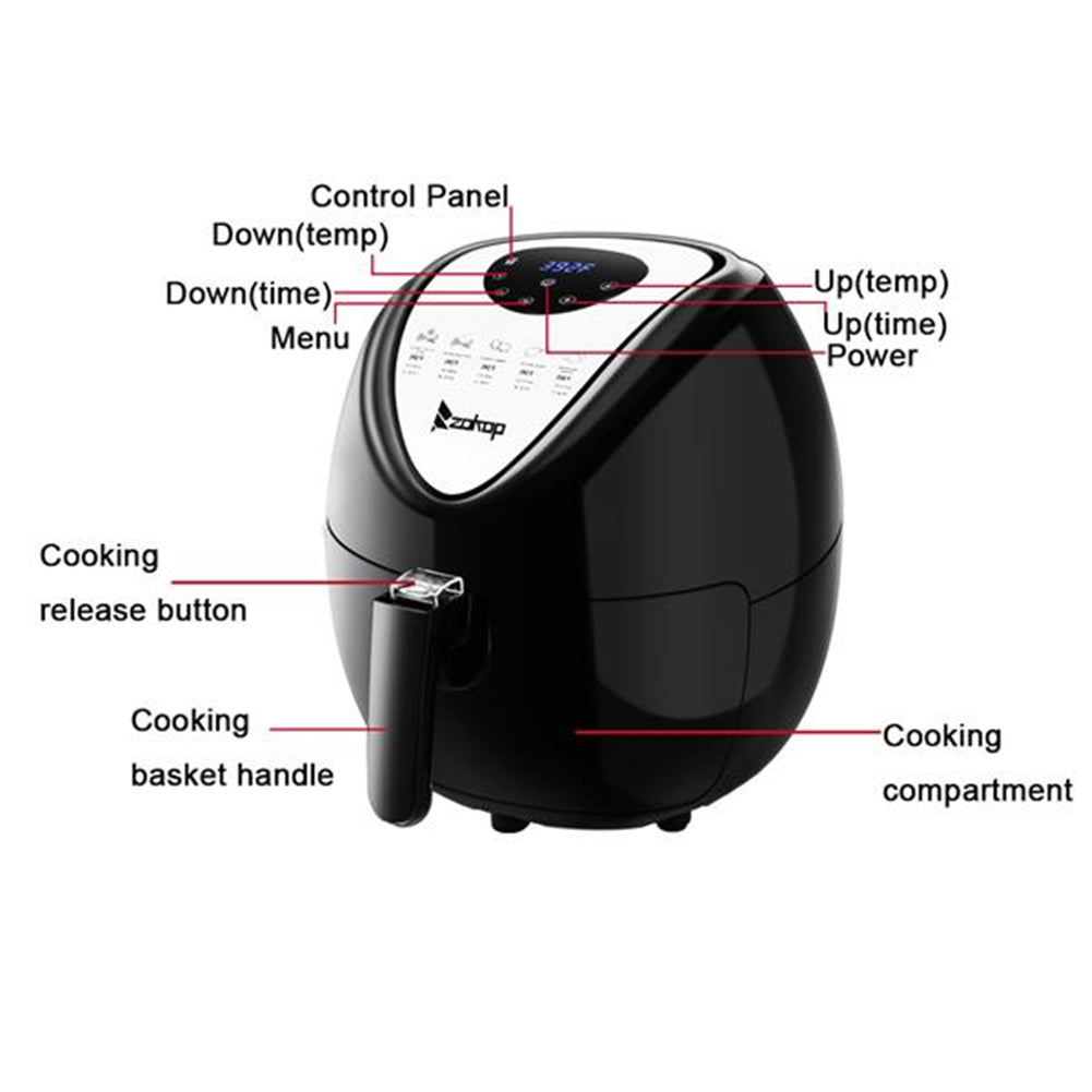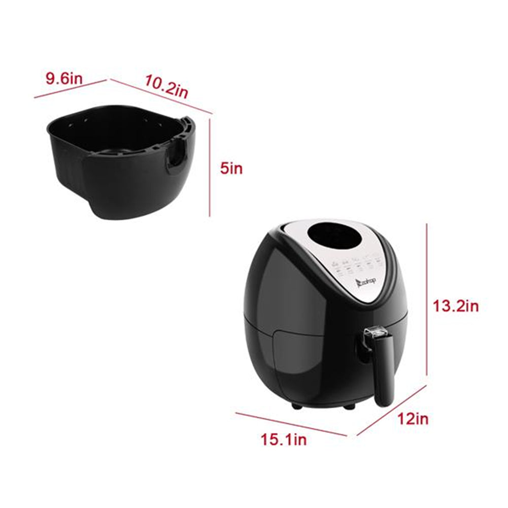 Large capacity can satisfy more food cooking.Digital simple touch screen with 7 cooking presets-one-button setting makes cooking easy.Use no or less fat-you can cook healthy without butter or fat.After the air fryer finishes the cooking time, it will automatically switch to standby mode.Equipped with a handle for easy transportation and storage.There is also a ready indicator light to let users know when the fryer reaches the desired temperature.