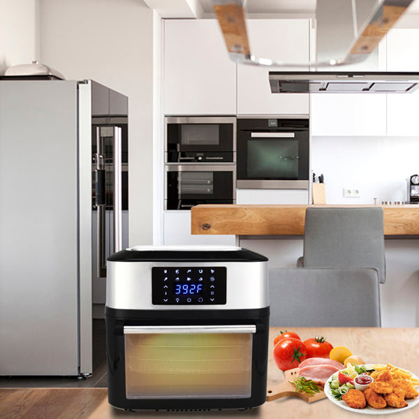 2. Digital easy one touch panel , 8 Preset Quick Menus , One Button Control : Internal lighting and Rotisserie. Dehydration function dehydrates foods such as fruit, veggies, and beef jerky, along with 3 Fry Net to cook multiple batches at once