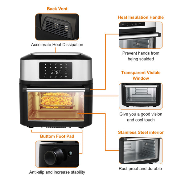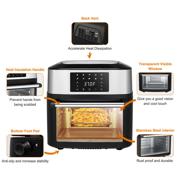 ZOKOP Air Fryer 16L 1800W All-in-One Airfryer Oven Black with Visible Window