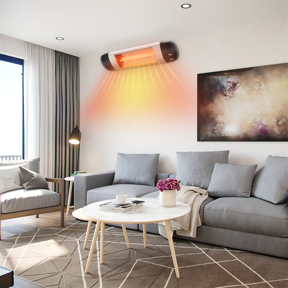 Applicable to Indoor Outdoor: Wall mounted design make it a perfect heating solution for areas such as bedroom, living room, garage, courtyard, outdoor patios, office and even public place like restaurant. Rapid efficient heating: equipped with carbon heating tube that heated by radiation.3 Heating Modes:equipped with a easily visible LED display to allow visibility from a distance. Select from the 3 heating modes to suite your situation.