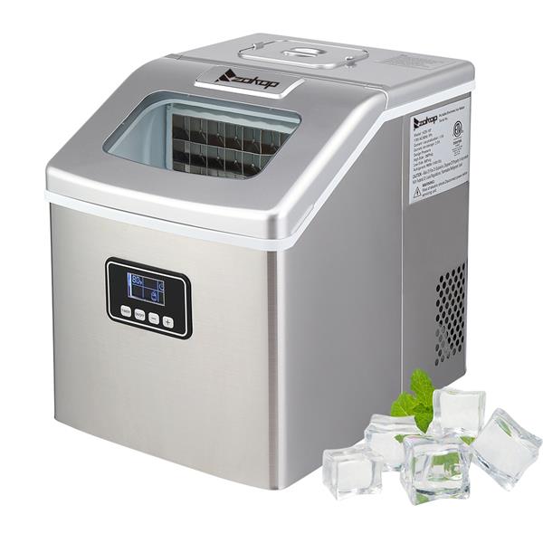 ZOKOP HZB-18F Ice Maker 115V 120W Stainless Steel for Home Kitchen Silver