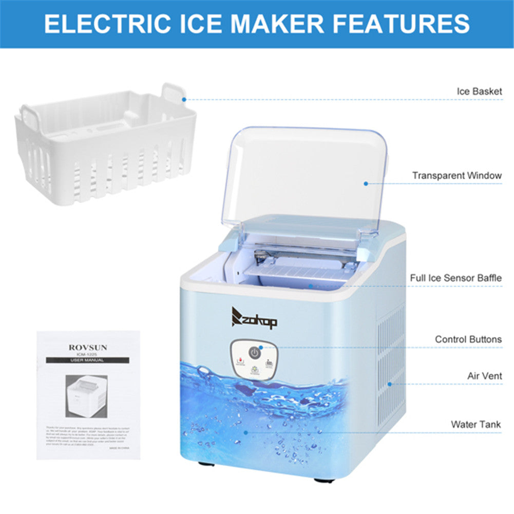 ZOKOP Ice Maker 26lbs/12kg/24h with Plastic Lid Blue