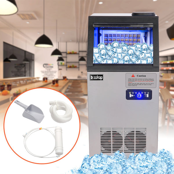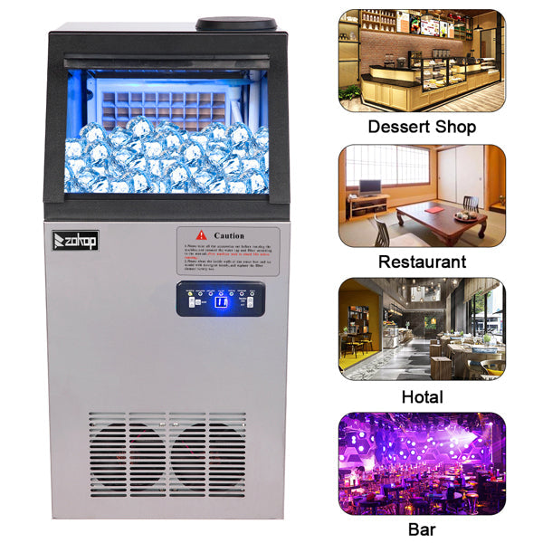ZOKOP Ice Maker BY-90PF Cube Machine Stainless Steel Freestanding