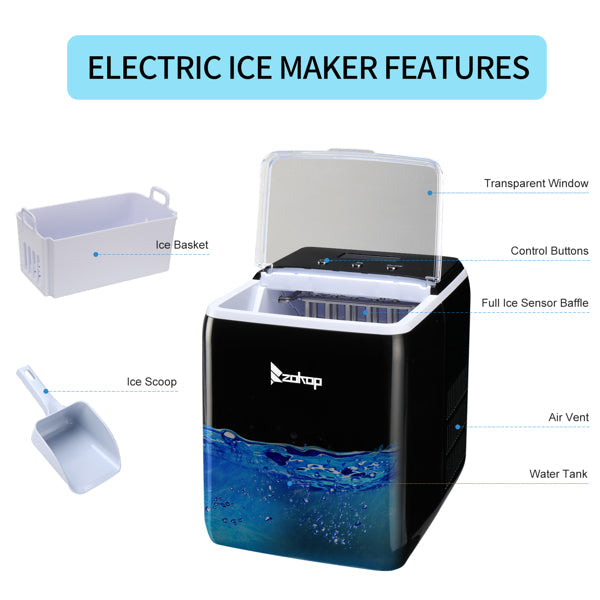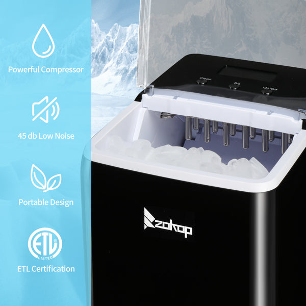 ZOKOP Ice Maker ICM-2005 Plastic Transparent Cover Display Office Home Black