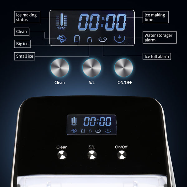 ?4. Easy operation: The intuitive one-button operation makes start-up a snap. It also has a feature that tells you if it needs water, or if ice is ready or if it needs cleaning. All for your convenience!