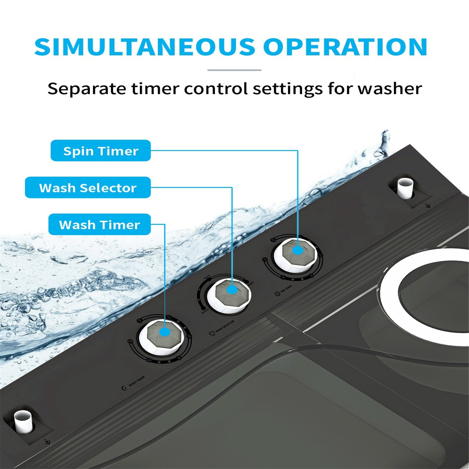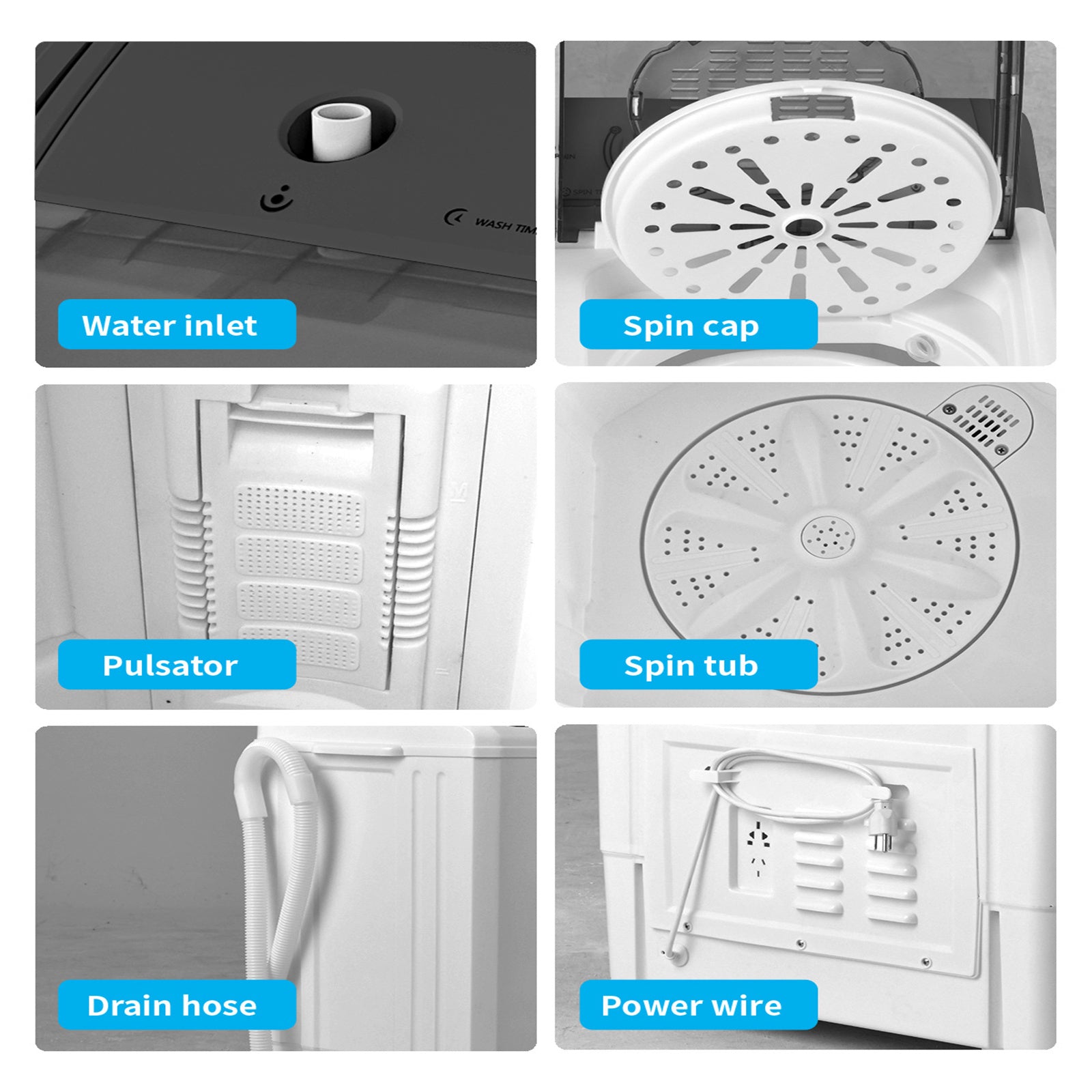 4. Independent timer control for washing and spinning operations. 15 minutes timer for each wash, 5 minutes spin timer, you can set the time according to the amount of laundry, the unit is equipped with a 1300RPM powerful motor with a maximum frequency of 60Hz. Save your time and get a cleaner wash.